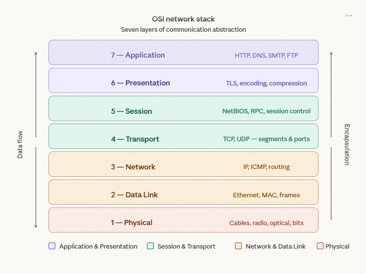 The Internet is the prime example. It was organised through protocols rather than a single hierarchical organisation and based on TCP/IP which collapses the seven layers of the OSI stack into four layers — Network Access, Internet, Transport, and Application.