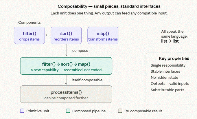 Second, to make stacks work requires organisations, people and agents to be good at ‘composing’ the modular elements of the stack to meet different tasks, linking them together into useful combinations. Exactly what this means will vary by field. In some cases this will be very much a human activity; in others, smart agents may be better at combining, synthesising and assembling elements (which themselves will include people as well as software).